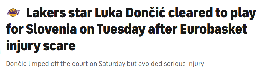 此前,在斯洛文尼亚对阵拉脱维亚的一场热身赛中,东契奇一瘸一拐地离开了球场,但他将在下一场对阵英国队的热身赛上出战。斯洛文尼亚篮球联合会已经确认了东契奇的参赛状态。
