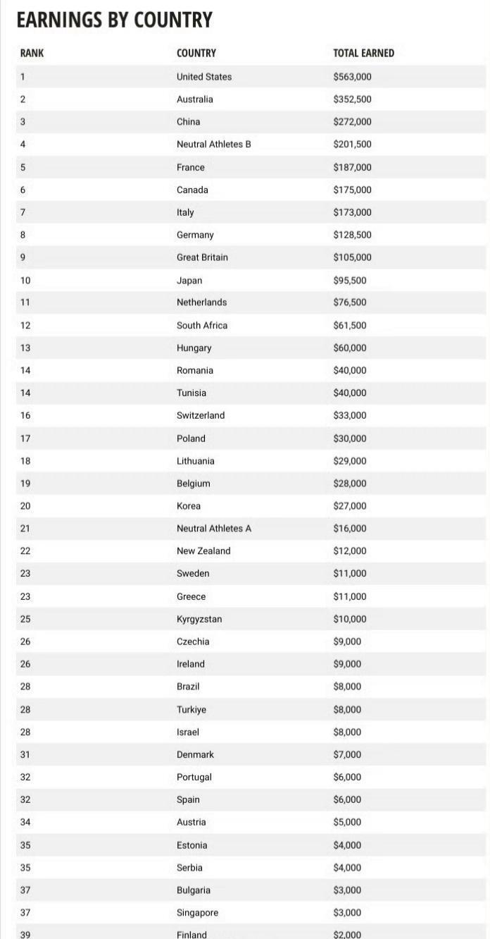 只看奖金收入的话,去年,也就是2024年,全世界游泳运动员的奖金榜,排名第一的凯特·道格拉斯,总奖金额竟然有34万美元之巨!