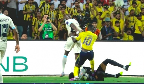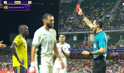 2025-08-19 20:50北京时间8月19日,利雅得胜利vs吉达联合第25分钟,佩雷拉护球给门将,马内从后纠缠,最后伸脚踩到对手肚子!VAR介入,黄牌改红牌!