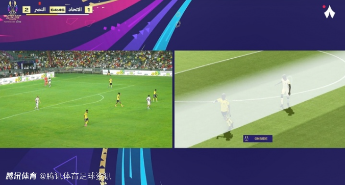 随后VAR介入,确认C罗不越位,进球有效!十人利雅得胜利2-1领先!