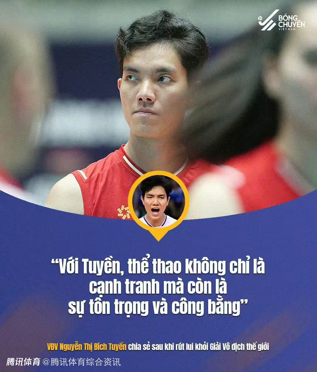 今天想向大家宣布,我将不会参加即将到来的世锦赛。这是经过慎重考虑的决定,并得到了教练组及越南排协的尊重。