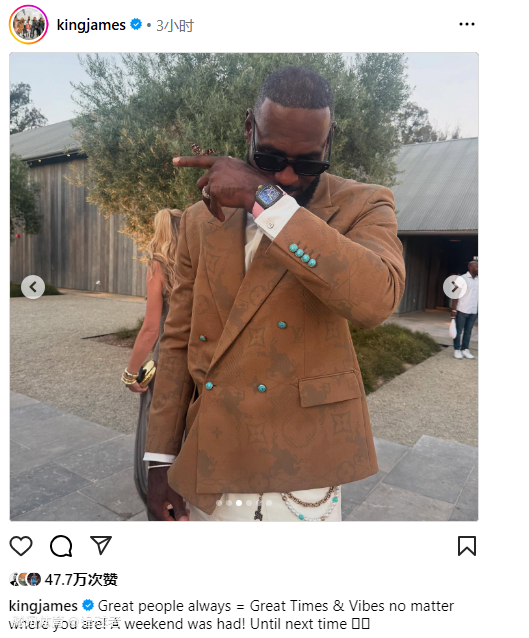 今日,40岁的詹姆斯晒出自己身穿西装参加婚礼的照片,戴着墨镜与追梦、凯文-乐福等人合影留念,其中老詹冲着镜头做出霸气的歪嘴表情;老詹还晒出自己打高尔夫的画面,配文写道:优秀的人无论身处何地,总能创造美好的时光与氛围!这个周末过得精彩无比!下次再聚。