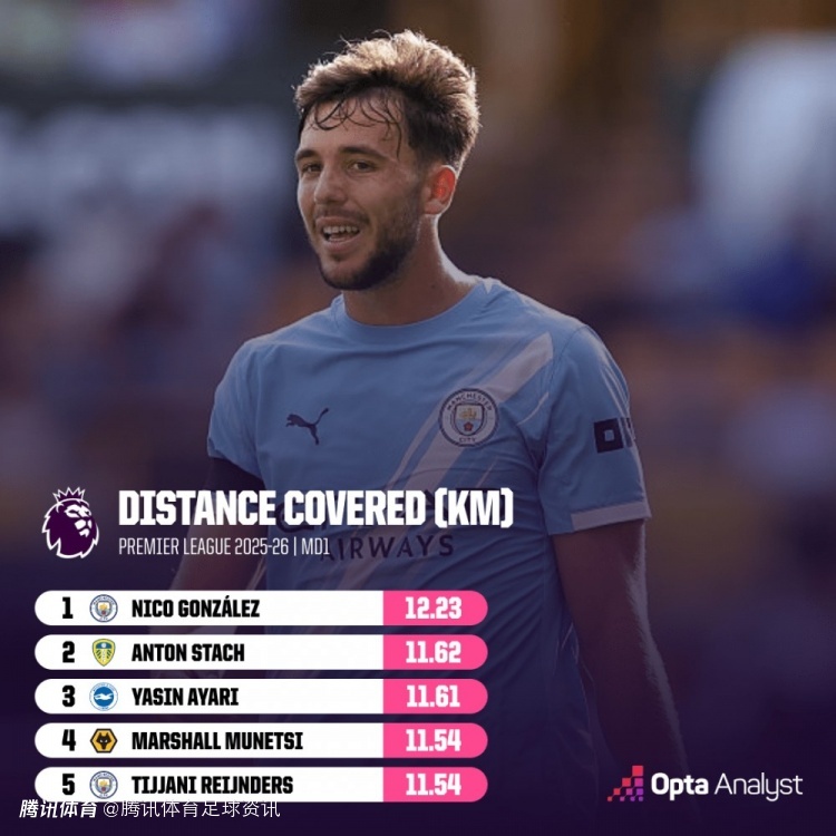 2025-08-21 07:20北京时间8月21日,Opta统计球员在英超首轮比赛中的跑动距离,并列出榜单,尼科-冈萨雷斯12.23公里居首。