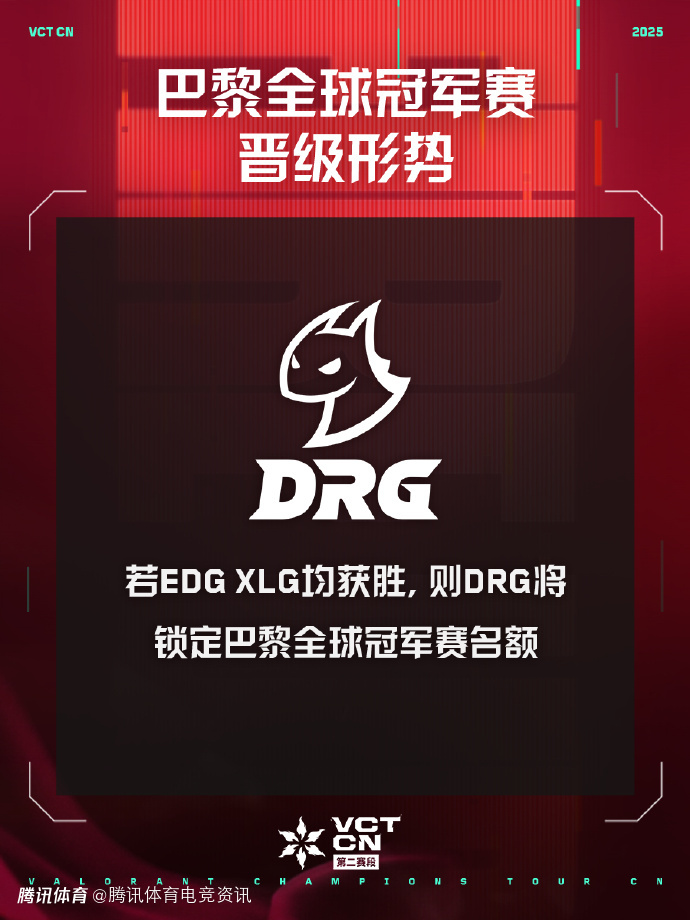 若EDG和XLG均获胜,则DRG锁定巴黎全球冠军赛名额!