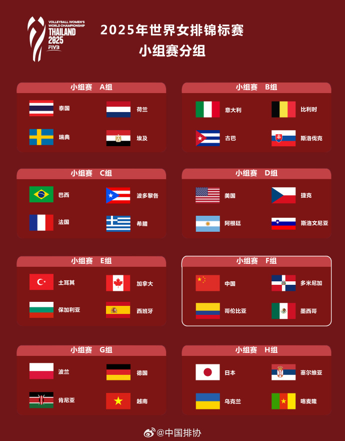 2025年女排世锦赛32强小组赛分组