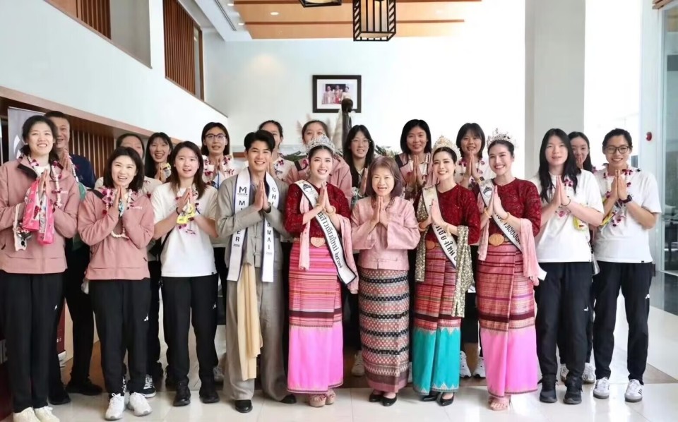 中国女排抵达泰国合影