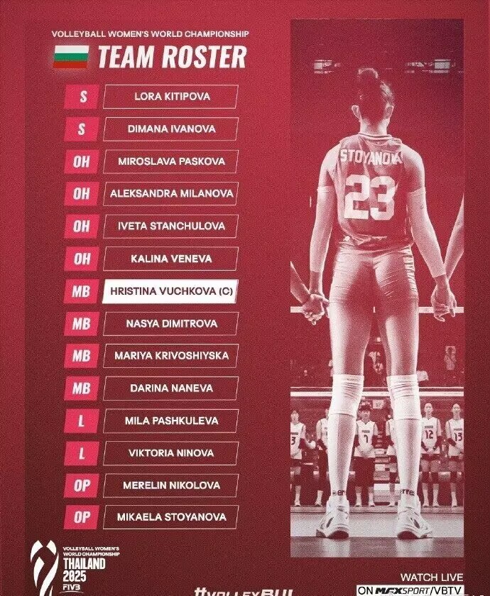 15. 保加利亚女排2025年世锦赛14人名单: