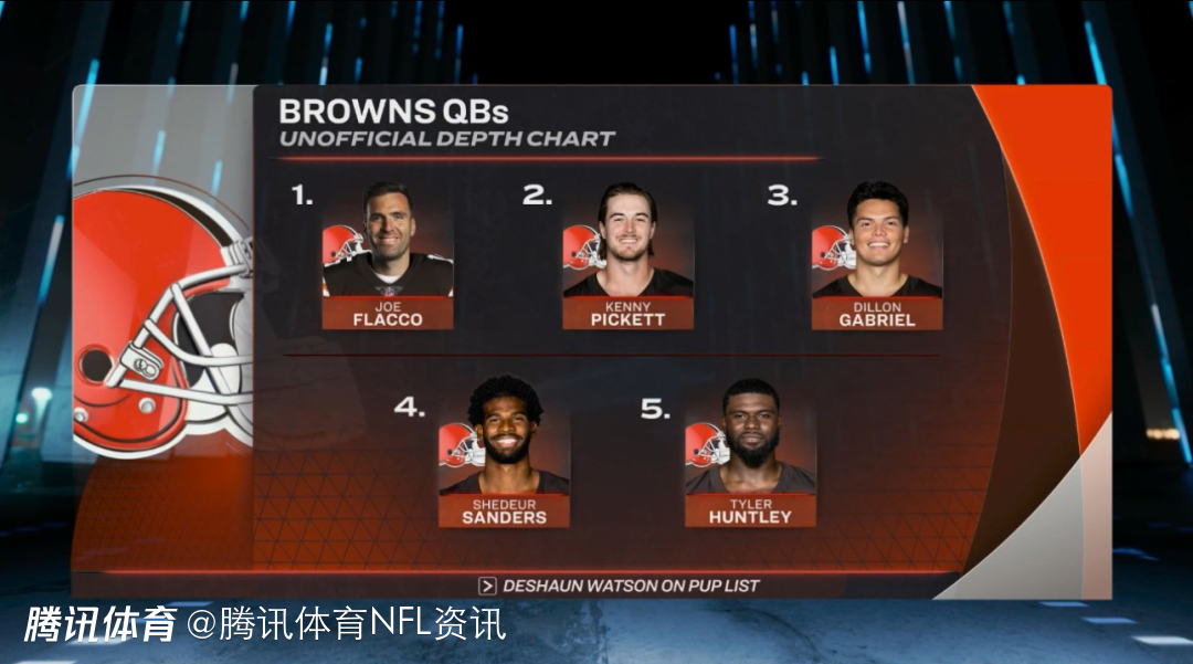 在四分卫方面,乔·弗拉科将率先首发,随后是新秀四分卫迪隆·加布里埃尔和谢德尔·桑德斯。桑德斯此前因腹斜肌伤势缺席训练,目前恢复良好,斯特凡斯基表示,除非赛前出现意外,桑德斯预计将正常出战。此外,肯尼·皮克特因腿筋伤势仍在恢复,泰勒·亨特利则因进攻回合有限可能不会上场。