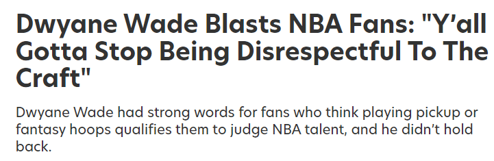 韦德回击球迷:别以为打打野球看看比赛就懂NBA 这是对这项运动的不尊重