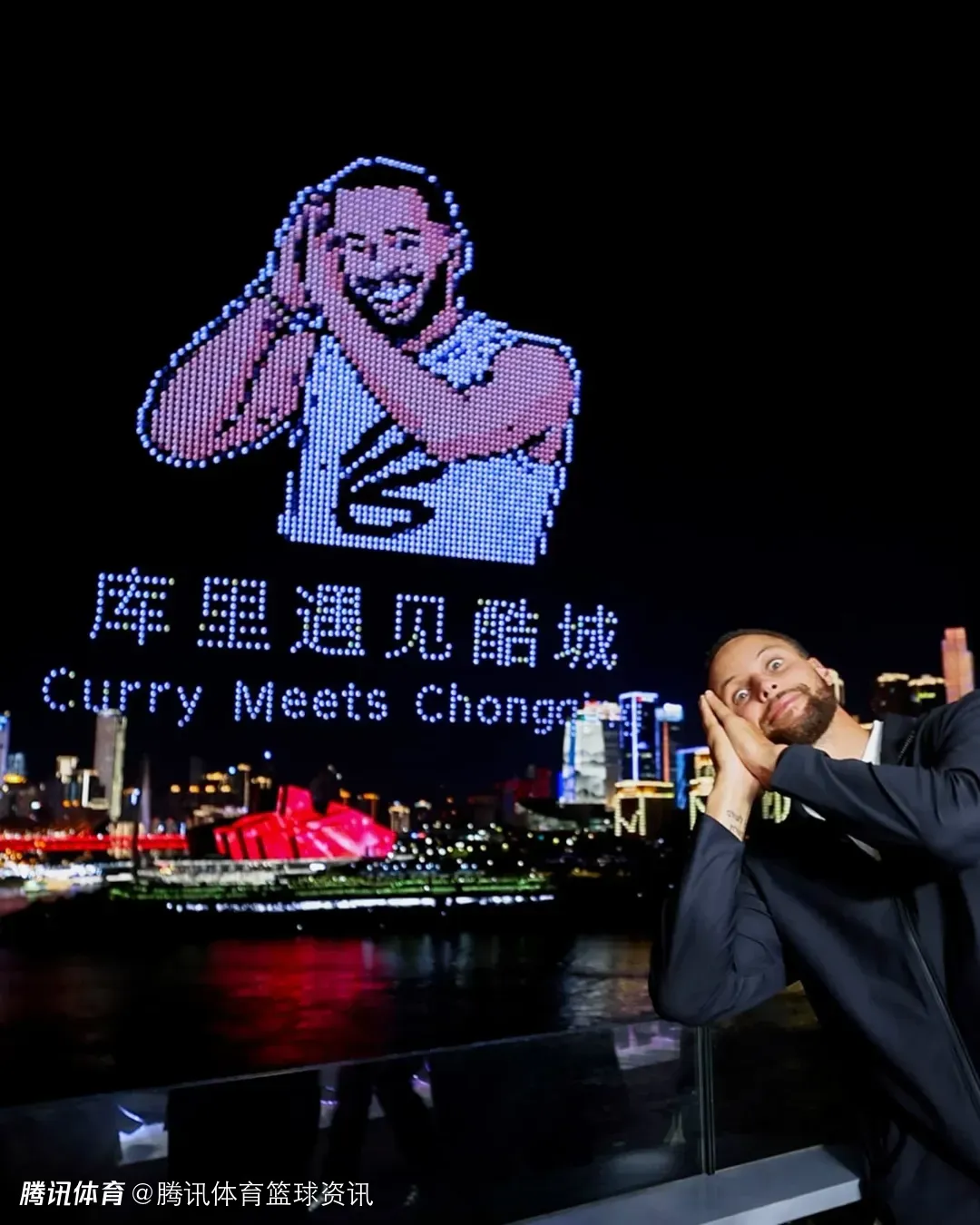 库里还举办训练营,指导中美年轻球员,个人连中25记三分球。18日晚,库里结束篮球训练营后,前往重庆市规划展览馆观看近半小时无人机表演,5000 架无人机组成篮球入筐、动漫形象模仿其 “晚安” 庆祝动作等场景。库里现场模仿该动作并开怀大笑,还惊叹表演 “疯狂”,感慨感受到大家的热情。