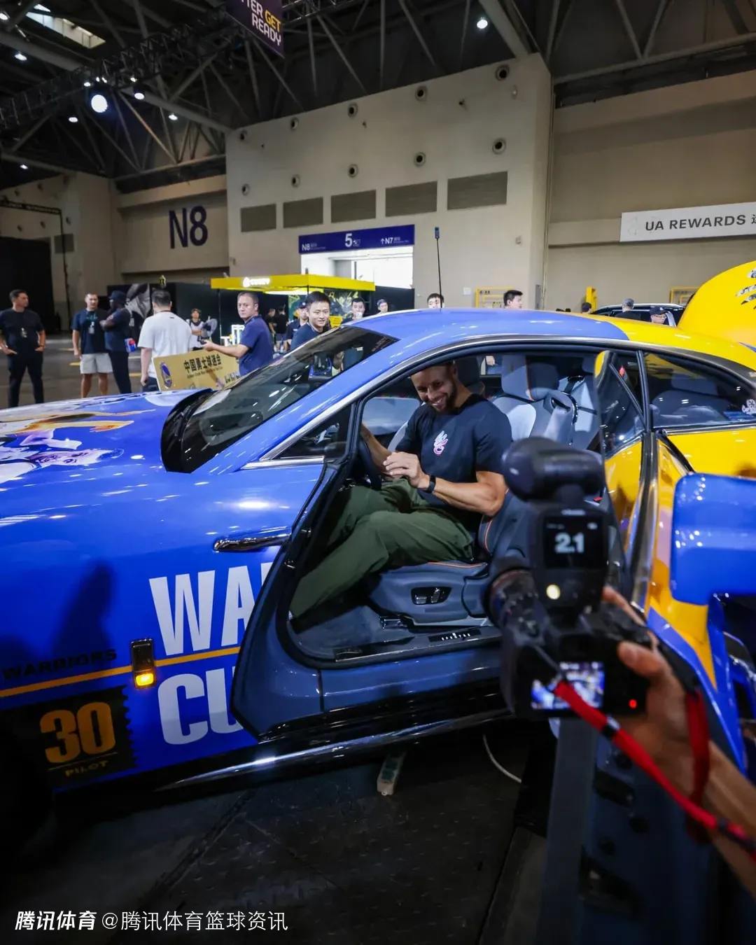 本次中国行期间,在重庆国博中心N8展馆,库里成功命中超高特制篮筐,揭幕“Curry运动聚场”。