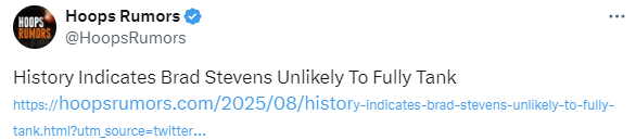2025-08-23 15:40北京时间8月23日,根据凯尔特人队记者克里斯-福斯伯格报道,虽然休赛期绿军在努力减薪降税,交易了波尔津吉斯、霍勒迪和尼昂等人,但这并不意味着新赛季凯尔特人队会摆烂。