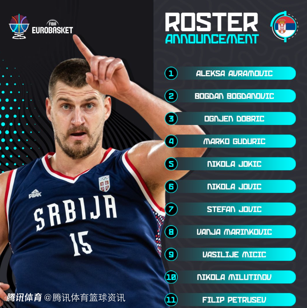 塞尔维亚男篮公布欧锦赛12人大名单:约基奇、博格丹领衔 托皮奇落选