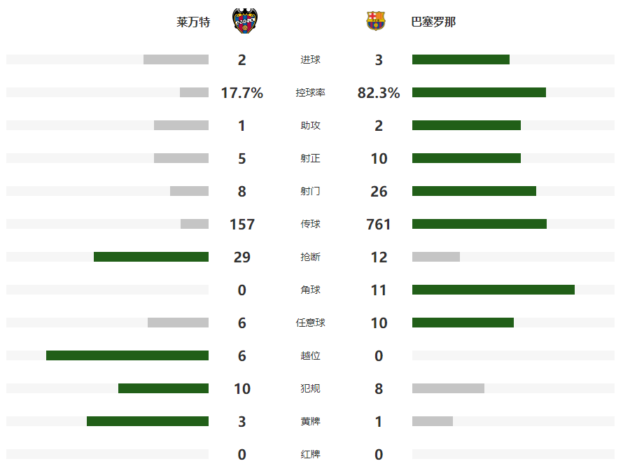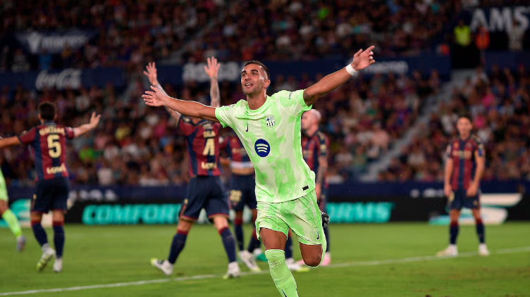 2025-08-24 05:50北京时间8月24日凌晨,西甲第2轮中,巴萨客场3-2逆转升班马莱万特,取得开局两连胜。伊万-罗梅罗先拔头筹,巴尔德送出点球莫拉莱斯主罚命中,下半时开场佩德里打入世界波,费兰-托雷斯破门,巴萨3分钟连入两球扳平比分,补时阶段伊尔格萨瓦尔自摆乌龙。