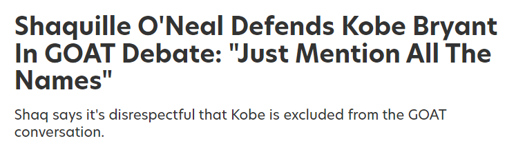 奥尼尔:NBA历史最佳讨论不能少科比 跳过他我就很生气