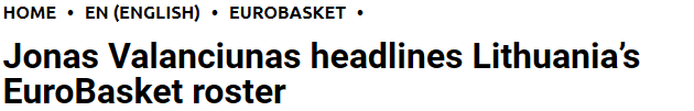 立陶宛男篮公布欧锦赛12人大名单:瓦兰丘纳斯领衔 小组赛将对阵德国芬兰
