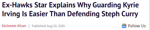 “防守库里这类球员更难,因为你要绕过太多掩护了。你会不断被掩护挡住、被身体碰撞。而防守单打型球员如欧文,无非就是你和他一对一而已。”
