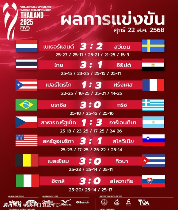 A组:荷兰3-2击败瑞典、泰国3-1击败埃及;