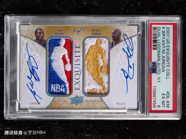 这张卡片来自2007-08赛季的Upper Deck Exquisite系列“双标志签名卡”,经PSA评级为EX-MT6,编号为1/1(全球仅此一张)。它的成交价超过了1952年Topps公司的米奇-曼特尔卡片,后者在2022年8月下旬以1260万美元的价格售出。这张乔丹和科比的卡片由Heritage拍卖行售出,买家的身份并未透露。