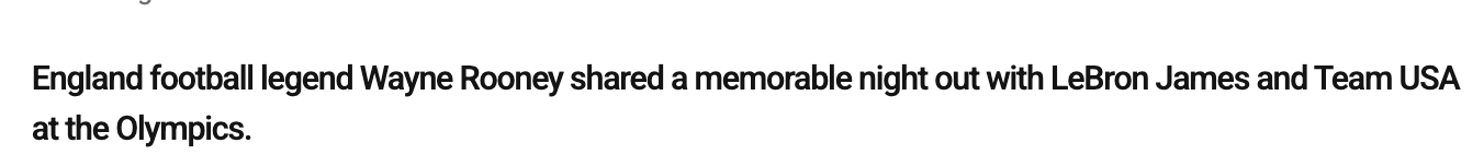 2025-08-24 22:10北京时间8月24日,近日,英格兰足球传奇人物鲁尼分享了奥运会期间自己和詹姆斯以及美国男篮的一次难忘邂逅。