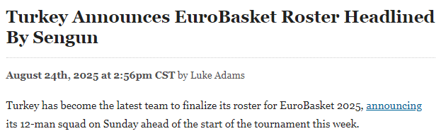 除申京与博纳外,土耳其国家队还集结了多名曾效力于NBA的球员。以下是代表土耳其征战欧锦赛的12名球员完整名单: