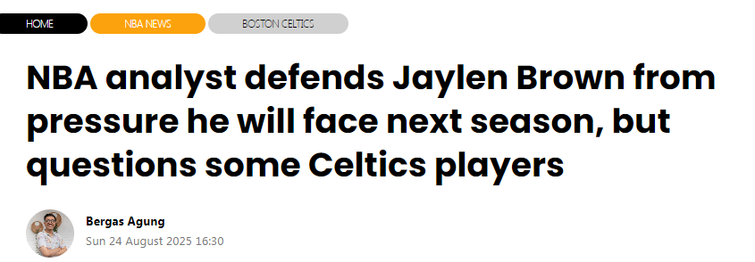2025-08-25 07:00北京时间8月25日,在杰伦-布朗的职业生涯中,他正面临前所未有的压力。部分分析师质疑他是否能达到队友塔图姆的赛场贡献水准。然而,NBA分析师杰夫-古德曼认为,考虑到波士顿凯尔特人队如今“残缺不全”的配角阵容,对布朗的批评并不公平。