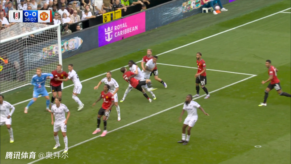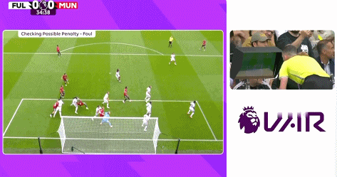 随后,视频助理裁判介入判罚,并且要求主裁判回看慢镜头。从慢镜头来看,巴锡的犯规动作非常明显,回看慢镜头之后,主裁判判罚点球,并且向现场球迷解释,“富勒姆3号球员对曼联7号球员犯规,判罚点球。”
