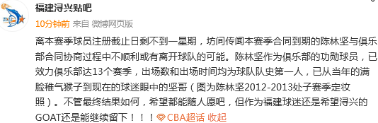 除了这名博主之外,篮球记者“LindaWooo”也在社媒发文:陈林坚的续约问题,仍未完全确定下来,需要等的消息。