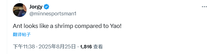 爱德华兹放话要隔扣姚明来致敬!森林狼官方转发:只有他敢这么说