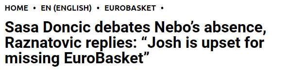 萨沙-东契奇说道:“在多次沟通中,内博从未跟我说过他不会参赛,即便在他最近一次受伤后也没有提及。国家队早在7月3日就向米兰俱乐部发出了征召邀请,然而直到两周后,我们才收到不建议他参赛的通知。我理解埃托雷-梅西纳禁止他参赛。对于错过本届欧锦赛,内博本人也感到非常沮丧!” 拉日纳托维奇还就此事可能对斯洛文尼亚篮协造成的影响发出警示:“即便失去斯洛文尼亚护照,对内博而言也不会有任何实质影响。但像萨沙-东契奇这样的言论,却可能给斯洛文尼亚篮协带来严重后果。”
