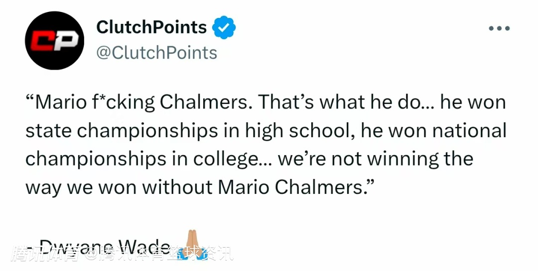 查尔莫斯的前热火队友韦德,在视频连线中谈及这位昔日搭档时难掩激动,直言:“这就是查尔莫斯!这就是他的能力。他在高中就拿过州冠军,大学又斩获全国冠军,要是没有他,我们热火根本不会以那样的方式赢下总冠军。”