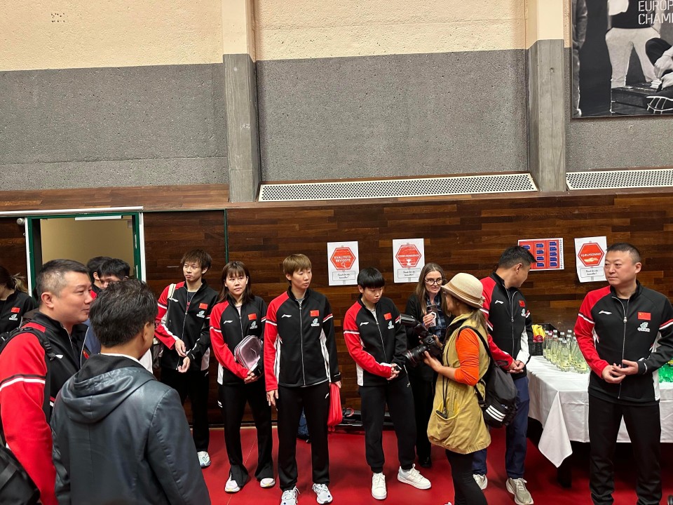 在WTT欧洲大满贯瑞典站的比赛中,国乒收获三冠。孙颖莎4-2战胜王曼昱获得女单冠军,孙颖莎/王曼昱3-2战胜日本组合张本美和/大藤沙月获得女双冠军,林诗栋/蒯曼3-0战胜韩国组合林钟勋/申裕斌获得混双冠军。比赛结束之后,国乒没有立即返程,而是参加了丹中建交75周年乒乓球友谊赛,国乒男队主教练王皓、女队主教练马琳率领孙颖莎、王曼昱、陈幸同、林诗栋、梁靖崑、林高远等队员一起出席。在活动中,孙颖莎、王曼昱与乒乓球爱好者搭档打混双,林诗栋与林高远搭档打男双,王曼昱与陈幸同搭档打女双。