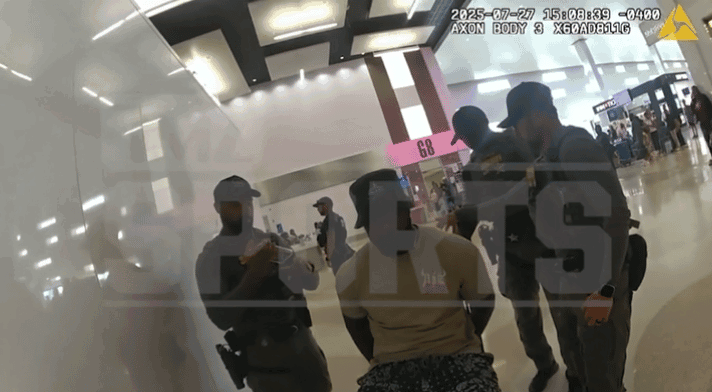 视频中,布劳沃德县副警长在机场走向莫里斯及其家人,随后告知他存在一份未执行的逮捕令。在给他戴上手铐后,警方将他安置在轮椅上,同时也给他的脚踝戴上了镣铐,并表示这是一项 “新政策”。