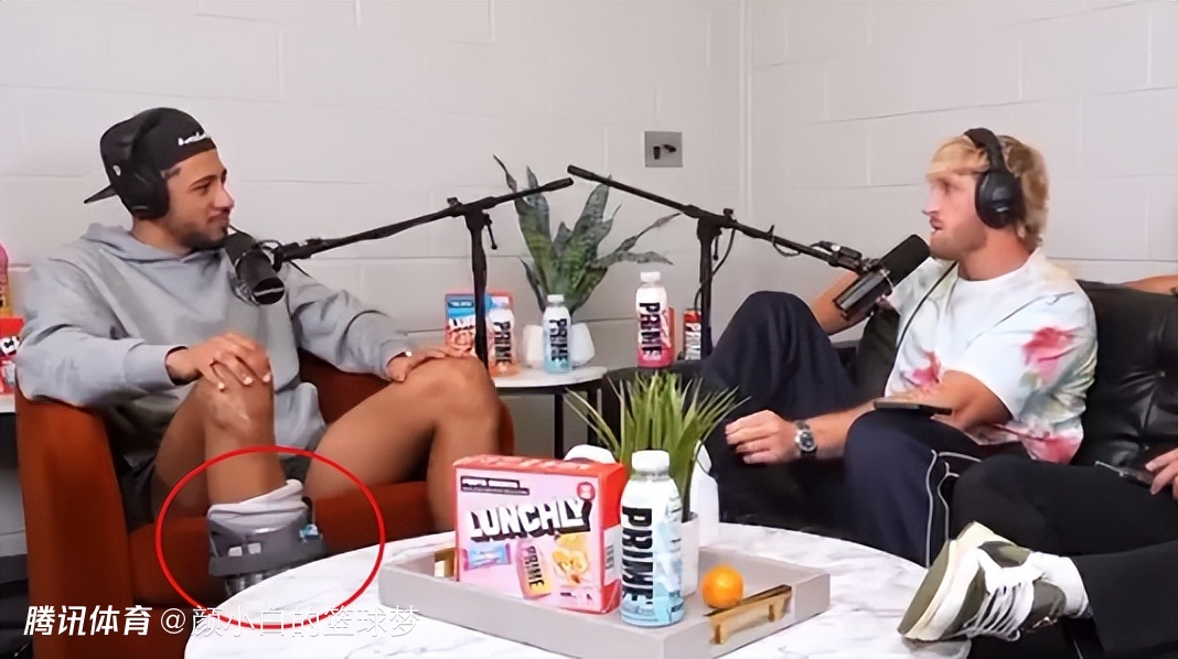 从这个播客节目中也能看到哈利伯顿的右脚上依旧穿着厚厚的保护靴。哈利伯顿是在北京时间6月24日接受的右脚跟腱修复手术,预计是10-12个月的恢复期,目前距离他手术后已经64天之久,他目前已经不需要拄拐了,可以穿着保护靴行走。