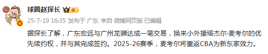 麦考尔的优势是,尺寸足、能担任双能卫兼具持球与无球能力,可适配广东队的两位明星后场。