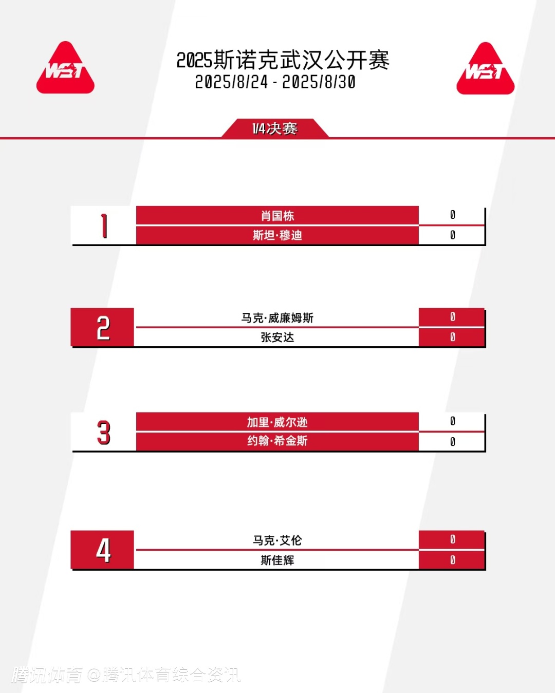 斯诺克武汉公开赛八强战赛程:肖国栋对阵大黑马穆迪 斯佳辉约战马克-艾伦