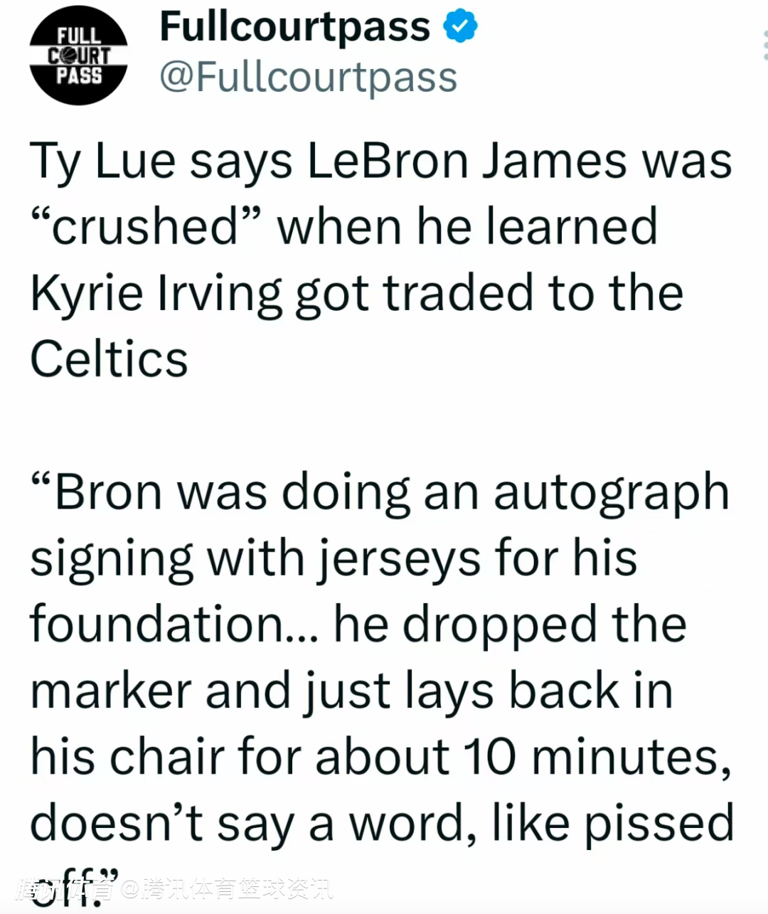 泰伦-卢回忆欧文交易往事:詹姆斯得知后沉默10分钟 他当时几乎崩溃