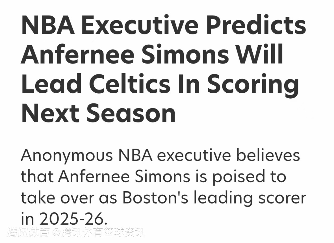 2025-08-29 09:40北京时间8月29日,一位匿名NBA高管在接受采访时表示,凯尔特人新援安芬尼-西蒙斯有望在2025-26赛季成为球队得分王。