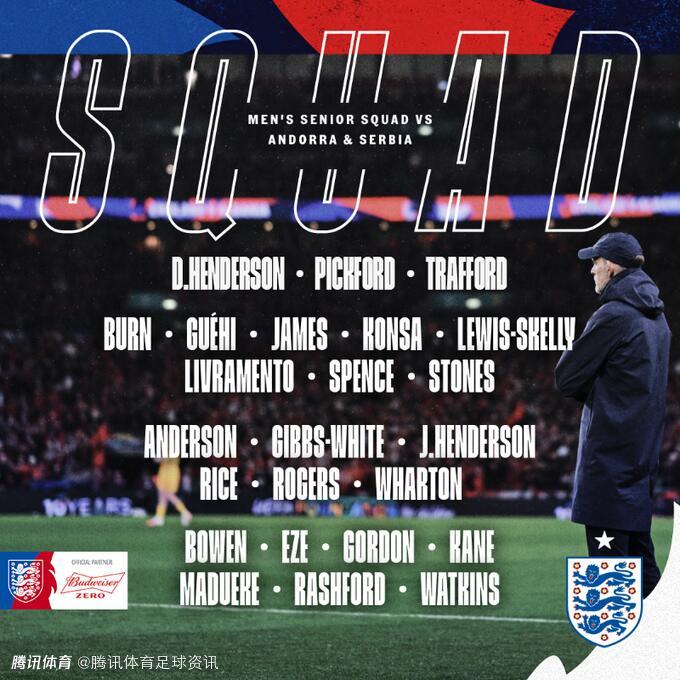 9月份两场世预,英格兰将在主场对阵安道尔,客场对阵塞尔维亚。目前英格兰在世预赛中3战全胜积9分,排名K组第1。