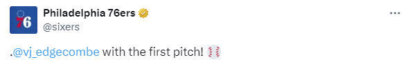 埃奇库姆为费城当地棒球队开球!马克西调侃:这球投偏了吧?