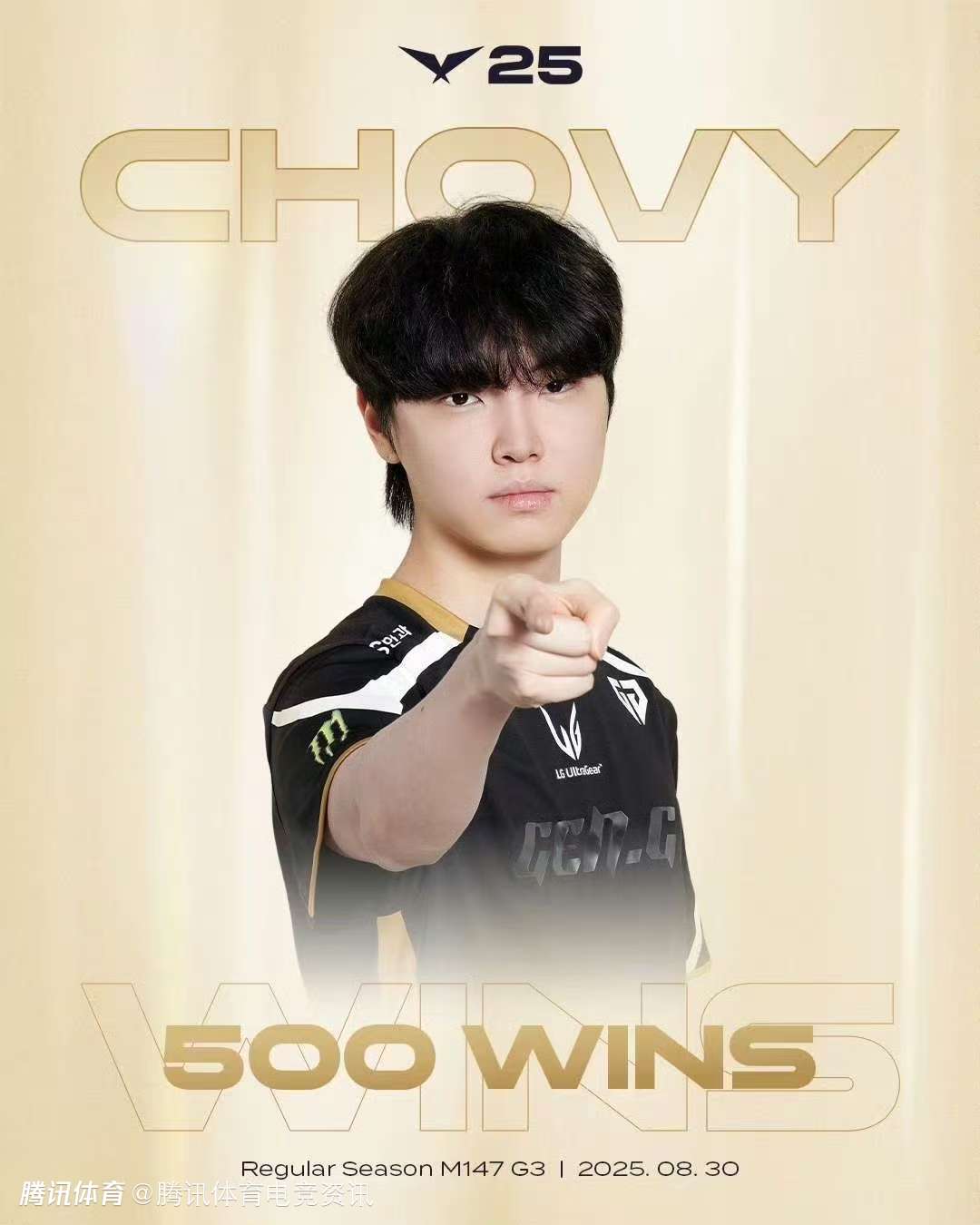 2025-08-30 17:402025年8月30日,GEN让一追二拿下T1,选手Chovy获得LCK 500胜场成就,成为LCK第三个全位置五百胜选手。