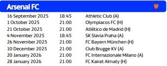阿森纳欧冠联赛阶段