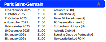 巴黎欧冠联赛阶段