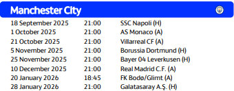 曼城欧冠联赛阶段