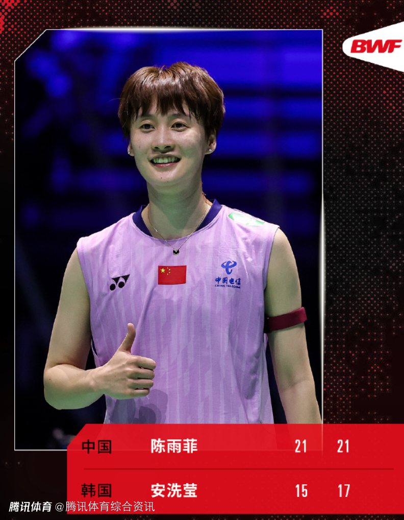 经过现场医治,陈雨菲回到比赛,当时第二局双方战成11平。带伤作战的陈雨菲顶住压力,以21-17再下一城,总比分2-0击败安洗莹,晋级决赛。
