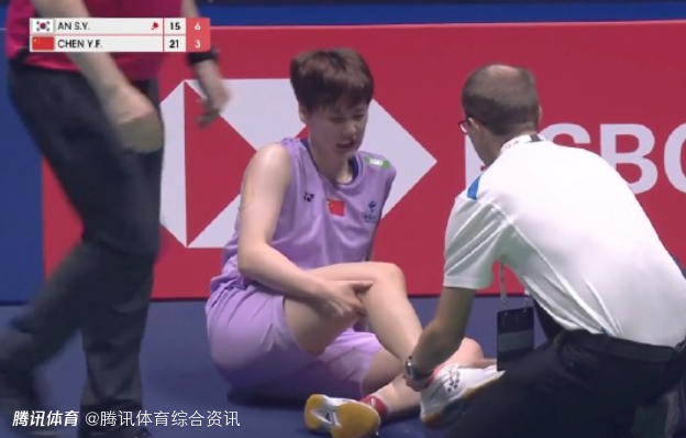 首局比赛,两边战况就较为焦灼,但陈雨菲还是以21-15先行拿下,第二局,陈雨菲在对安洗莹的回球时,右腿意外受伤痛苦倒地。