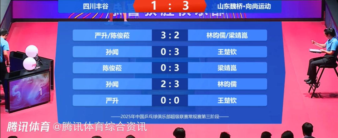 乒超联赛第三阶段第二日晚间场战报:王楚钦带队获胜 温瑞博因伤退赛