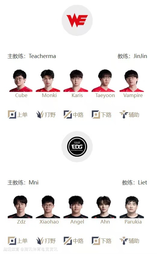 WE:上单Cube、打野Monki、中路Karis、下路Taeyoon、辅助Vampire