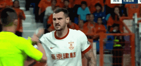 第15分钟,罗西奇撞倒马镇阻止其开球,傅明对其警告的过程中,罗西奇喋喋不休,最终吃到黄牌。