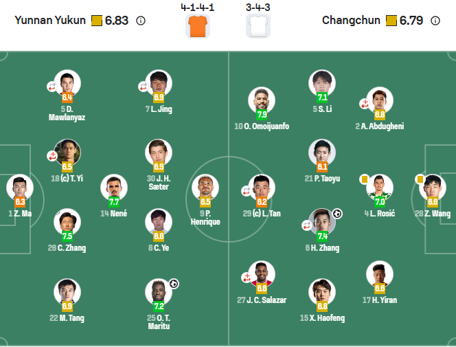 中场:25-奥斯卡、7-罗竞(54’10-约尼查)、8-叶楚贵、14-内内、30-侯永永